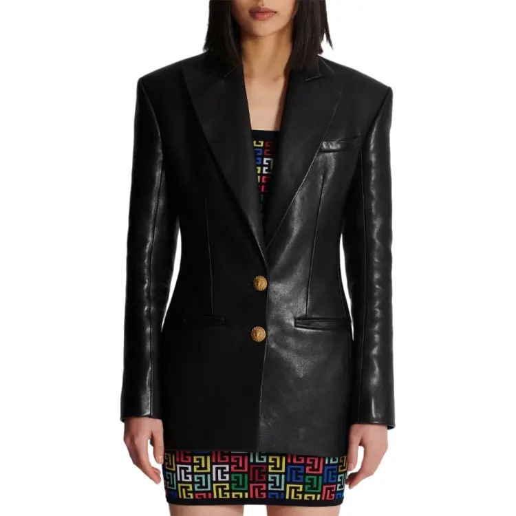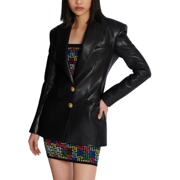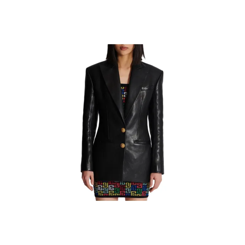 BALMAIN SS24 Кожа Куртка Женская Черная