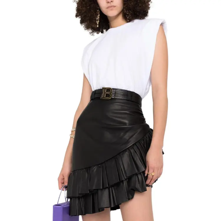 BALMAIN Кожаные короткие юбки Женские Черный