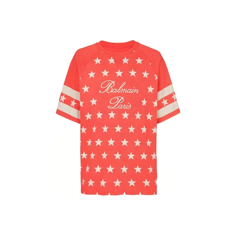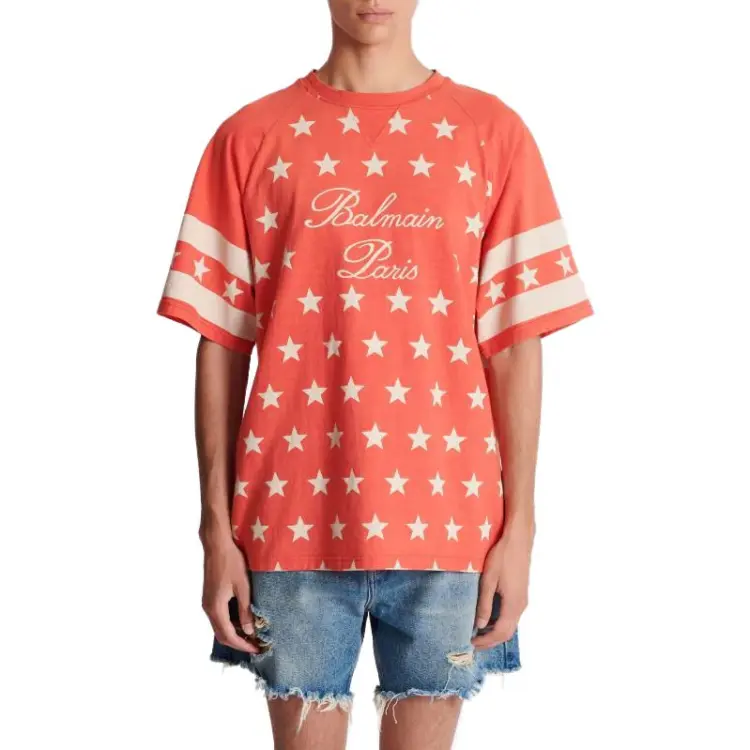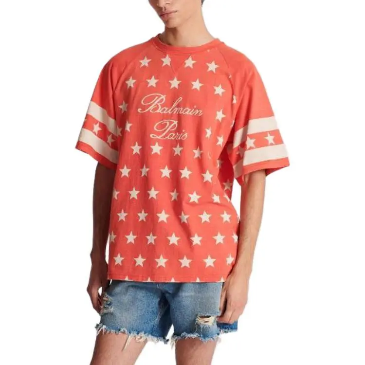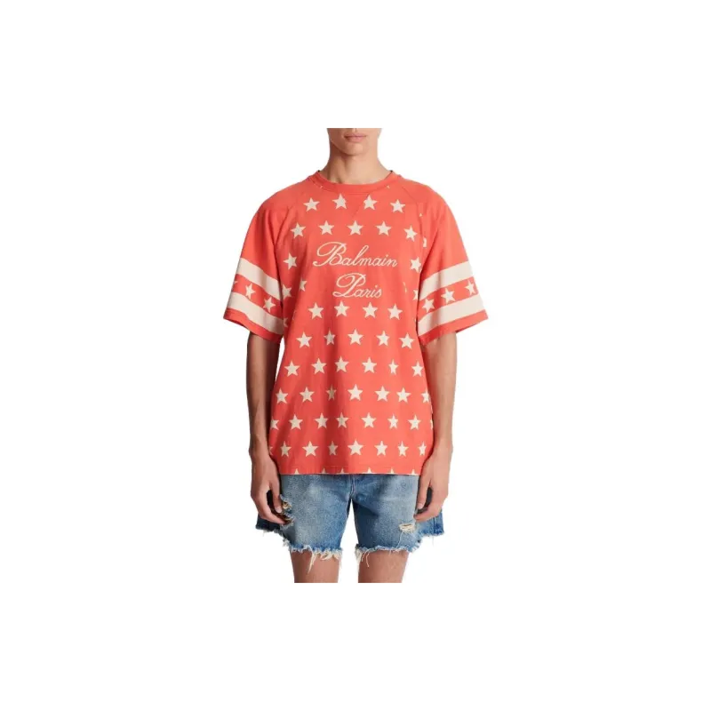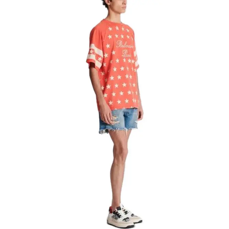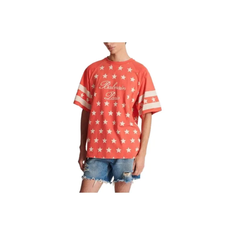 BALMAIN Подпись Звезды T-Рубашка Мужская Оранжевая Красная