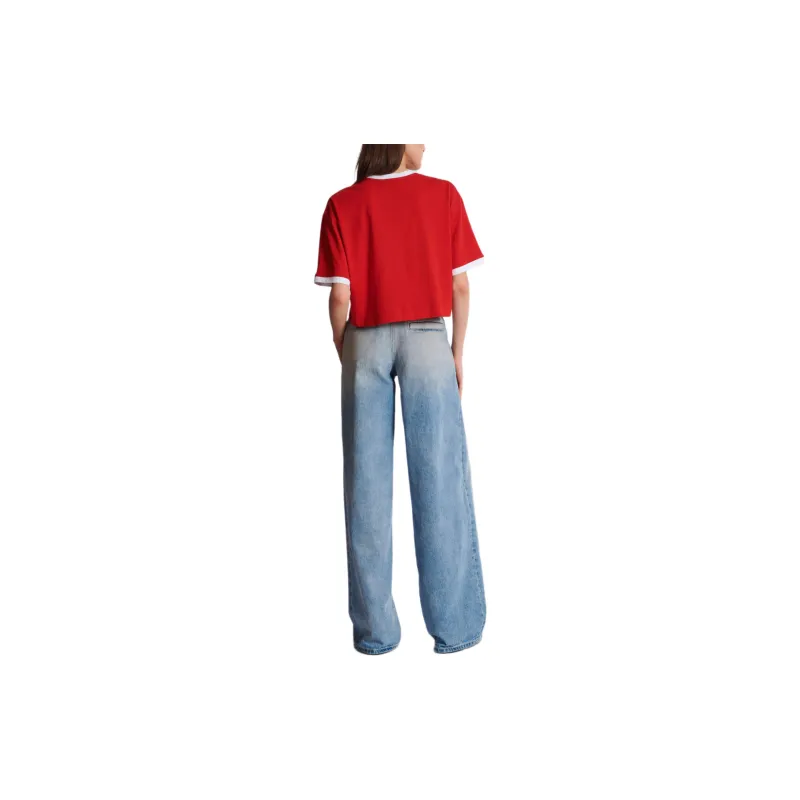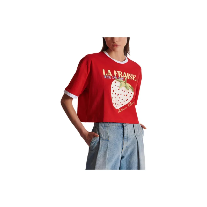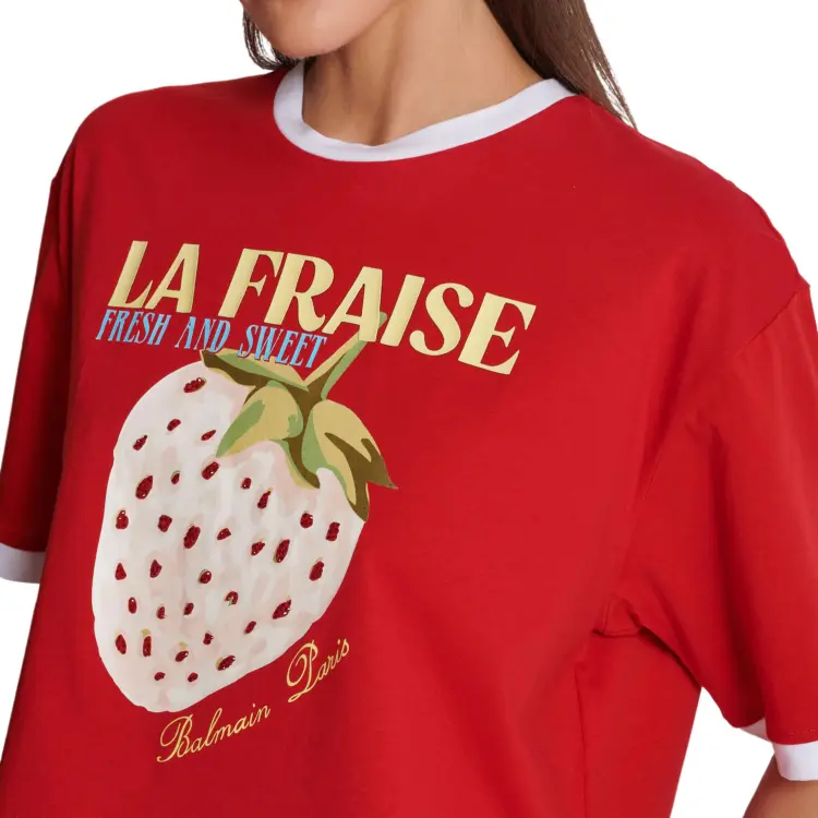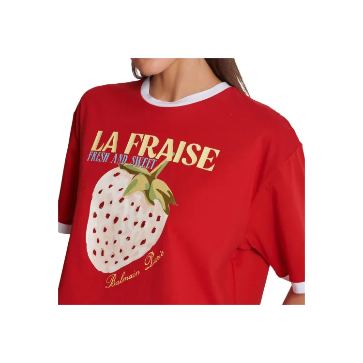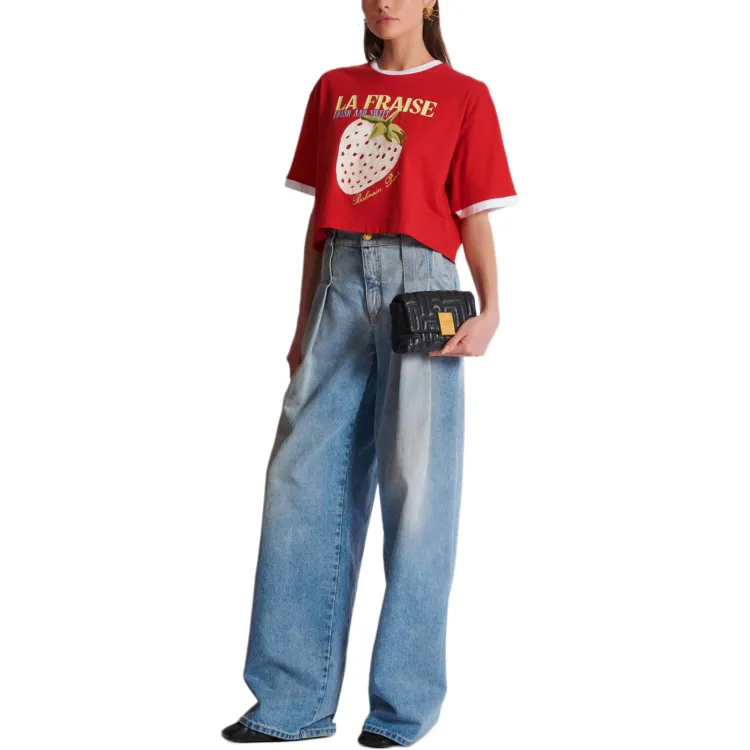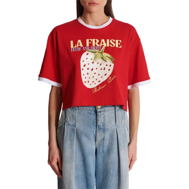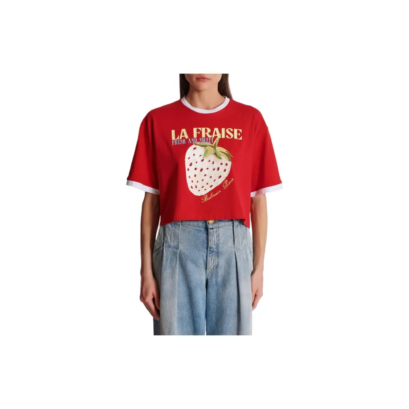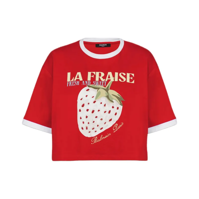 BALMAIN Футболка с принтом "Letter C" круглый вырез укороченный рукав короткая футболка женская красная