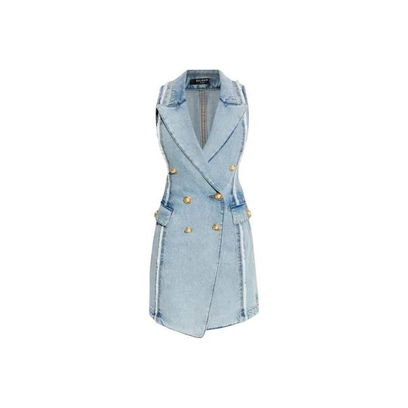 BALMAIN SS25 Без рукавов Платье Женское Синее