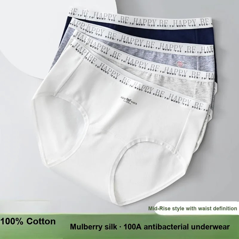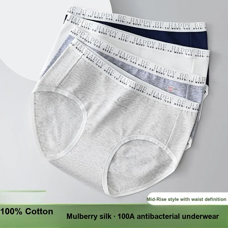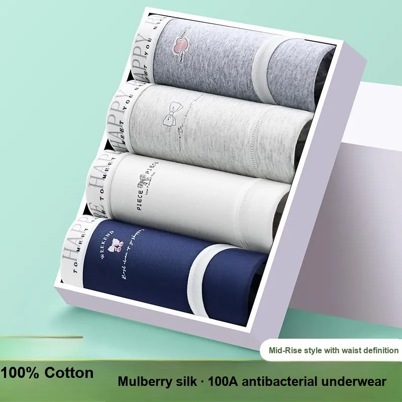 100A Антибактериальный Дышащий Трусы Девичий Шелк Тутовый Низ/4 Упаковка