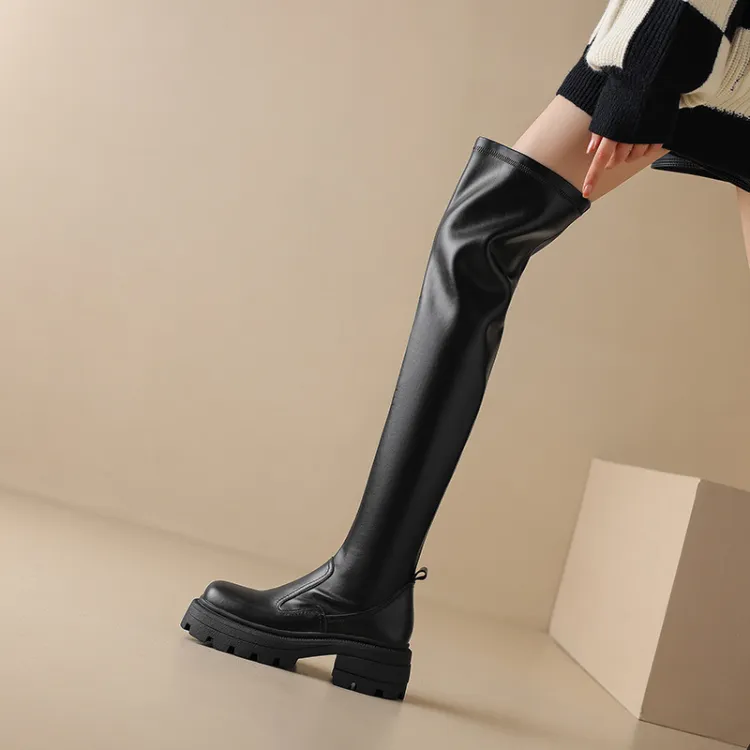BANWEIDIYA Ботинки выше колена 5 см женские черные
