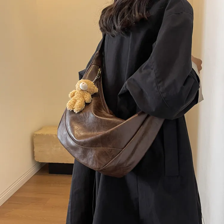 Banyanu ПУ (полиуретан) Пельмени Сумка Сумка через плечо Средняя Женская Черная Кофейная Коричневая