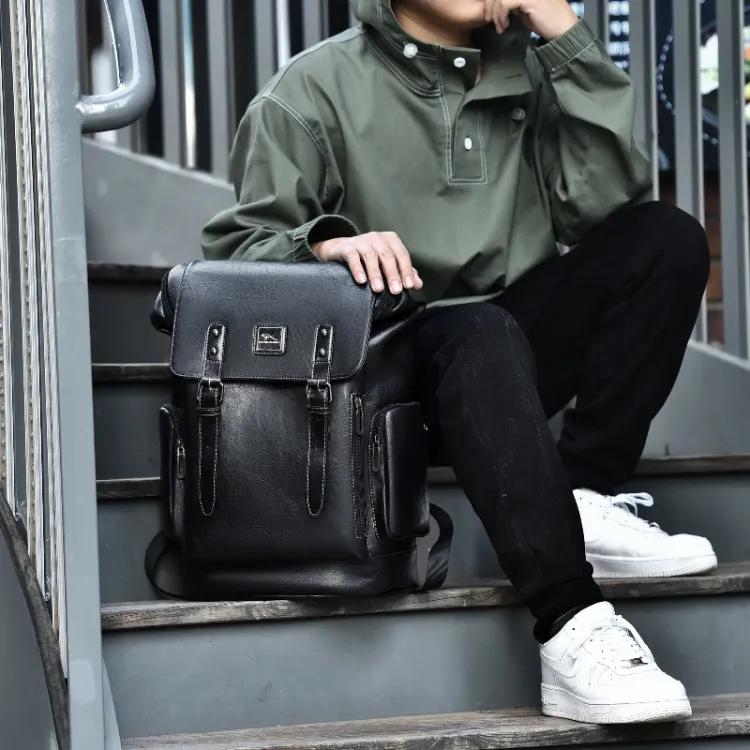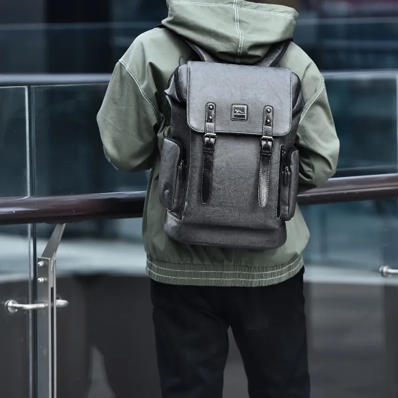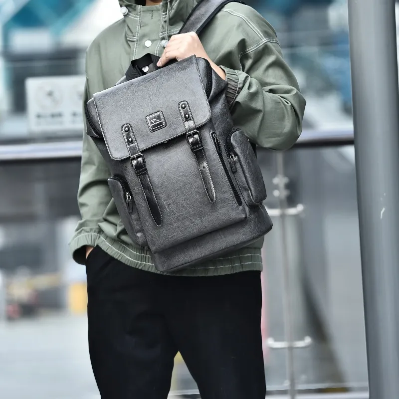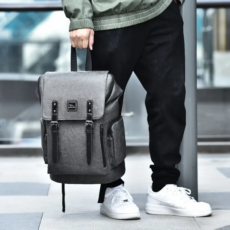 BAODIDAISHU ПУ (полиуретан) Рюкзак Портативный Большой Мужской Серый Черный