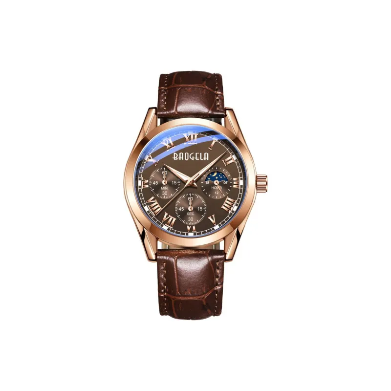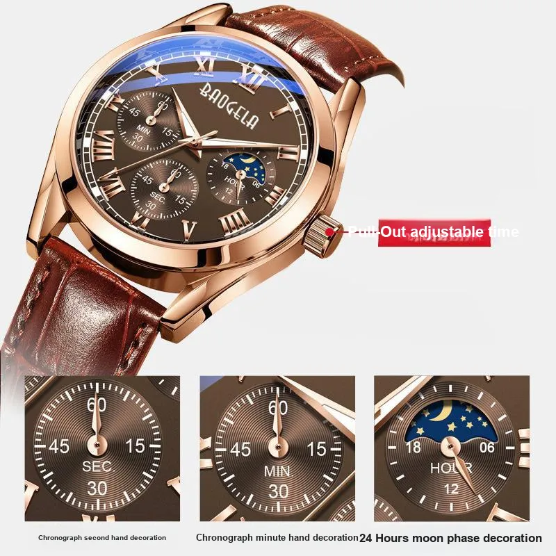 BAOGELA Кварцевый механизм кожаный ремешок мужские часы черный циферблат