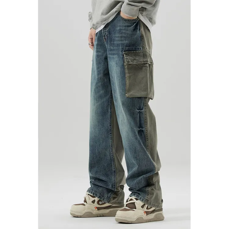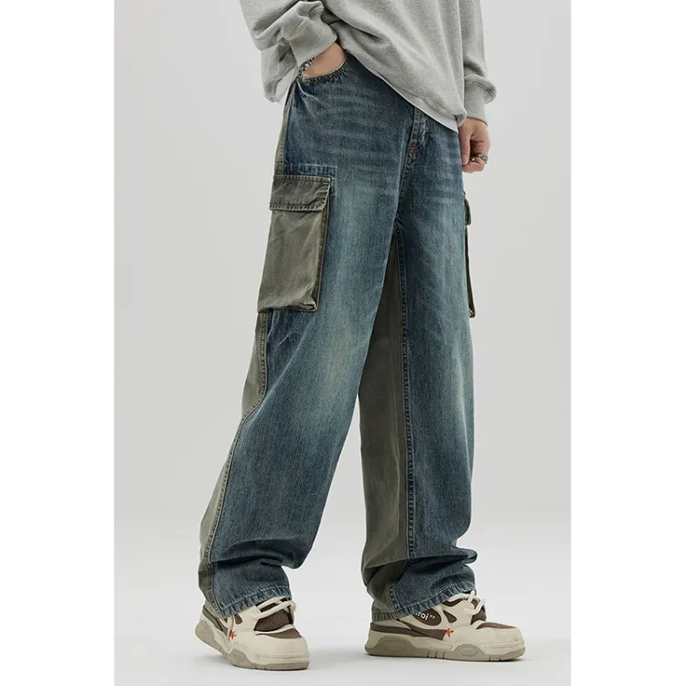 BAOMIKA Синий Серый Унисекс Джинсы