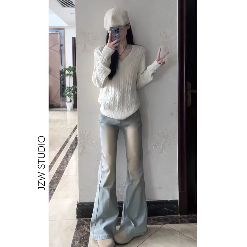 BAOMIKA Винтажные Светло-Серые Унисекс Джинсы