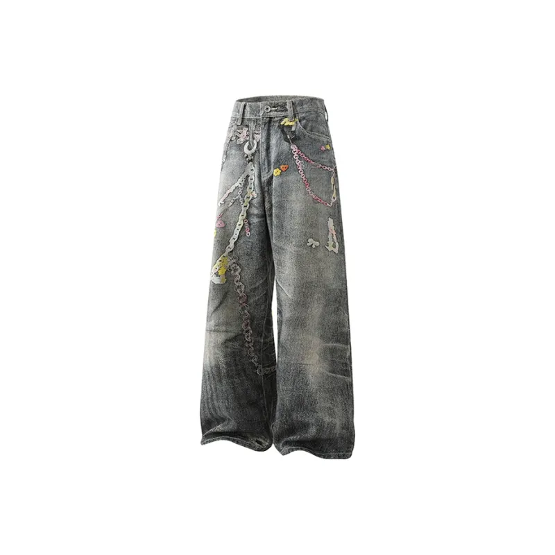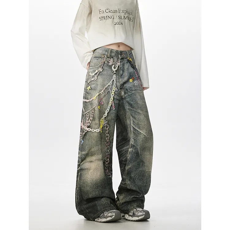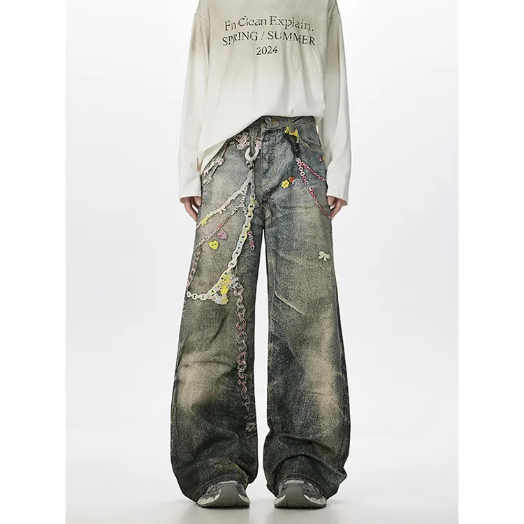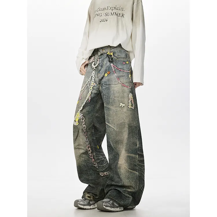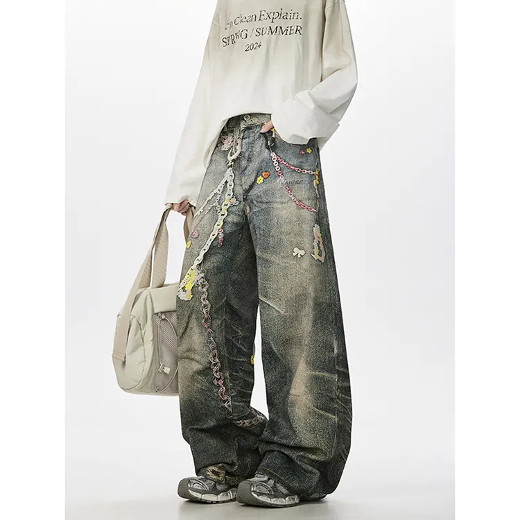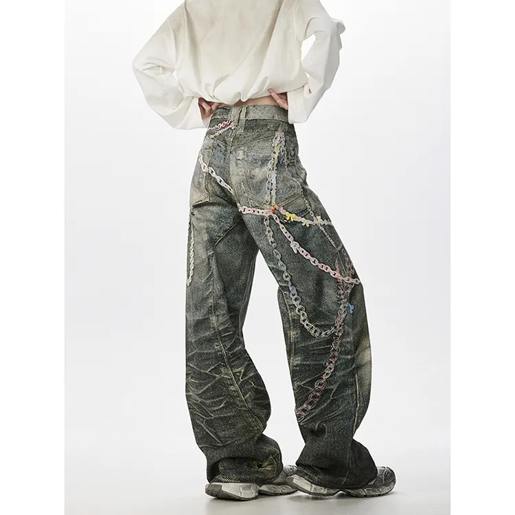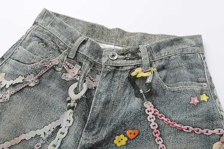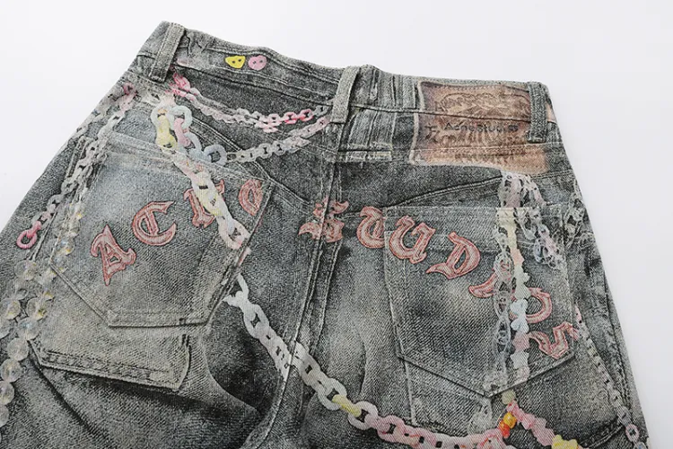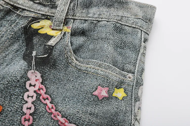 BAOZAN Цифровой С принтом Съемный Бренд Этикетка Унисекс Джинсы