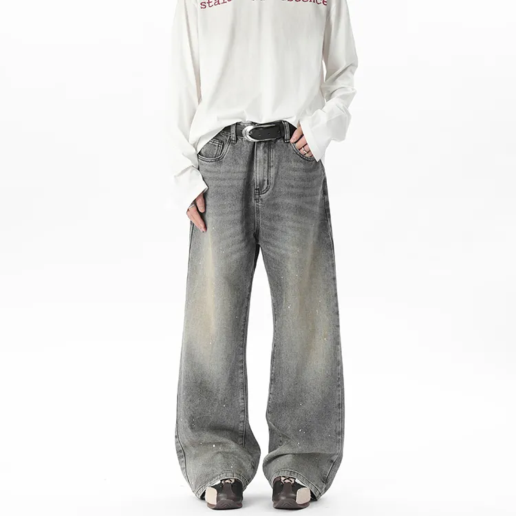BAOZAN Потертый серый унисекс джинсы