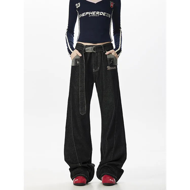 BAOZAN Оригинальный джинсовый черный съемный логотип бренда унисекс джинсы
