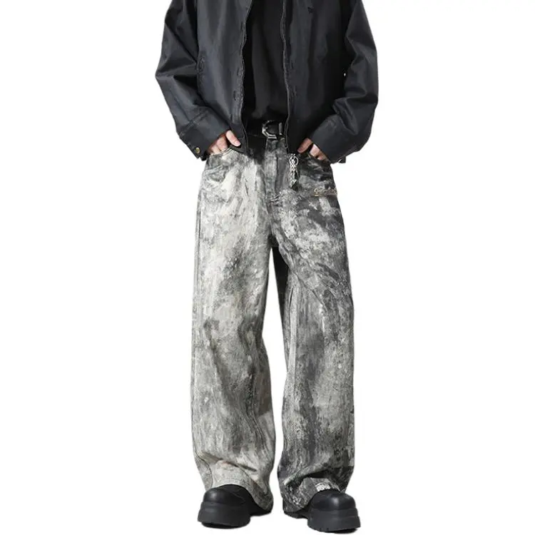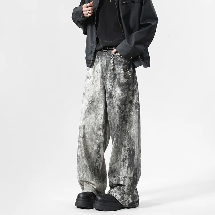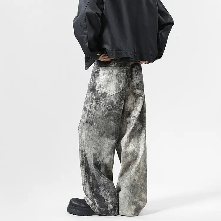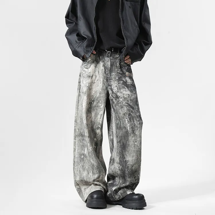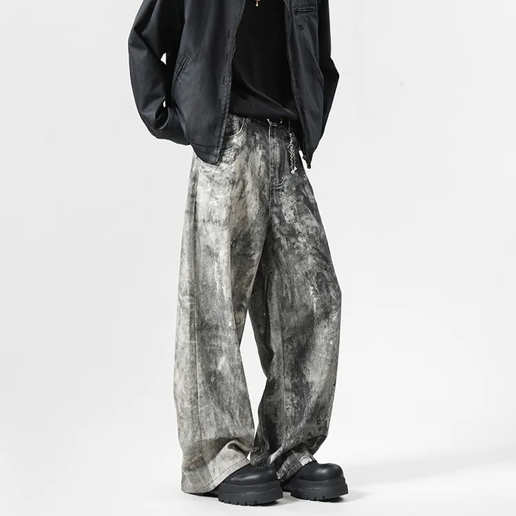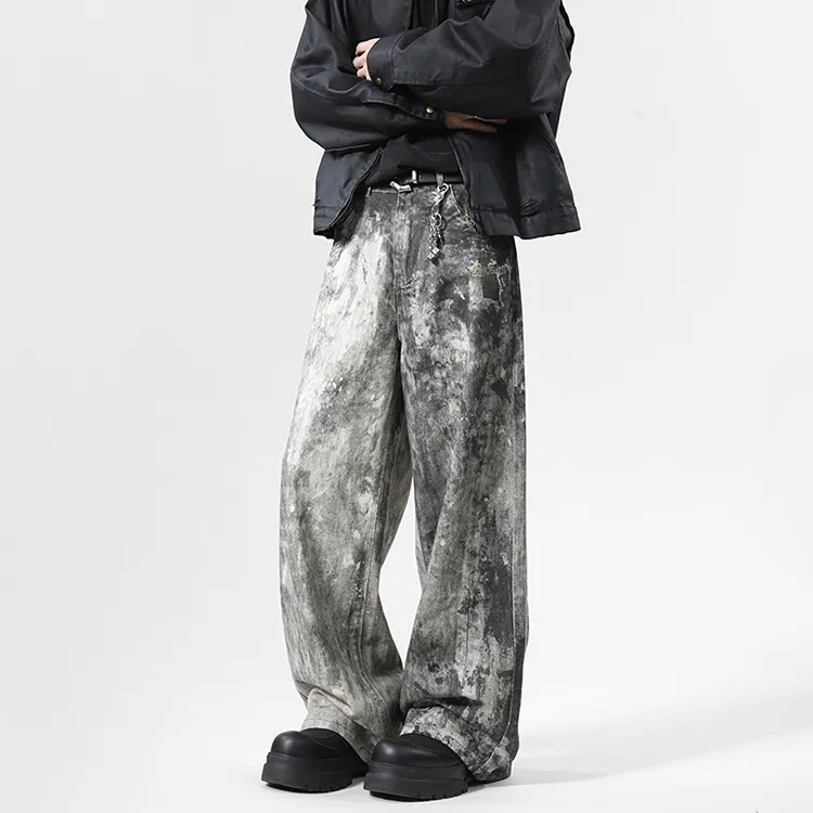 BAOZAN Wasteland Gray Detachable Brand Logo Unisex Jeans BAOZAN Пустошь Серый Съемный Логотип Бренда Унисекс Джинсы