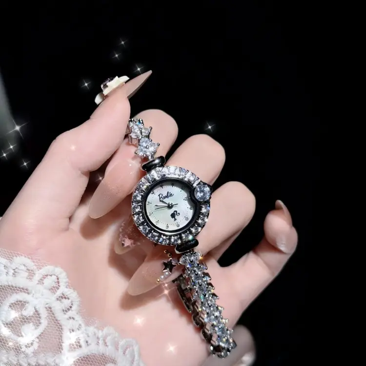 Барби Принцесса Full Стразы Украшенное Маленькое Круглое Часы Маленький Блеск The Bunny Кварцевый Механизм