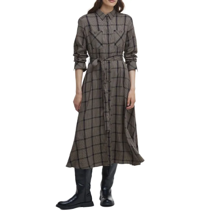 BARBOUR Длинное платье с длинными рукавами женское серое