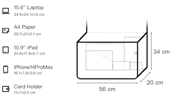 Д56*Ш20*В34см