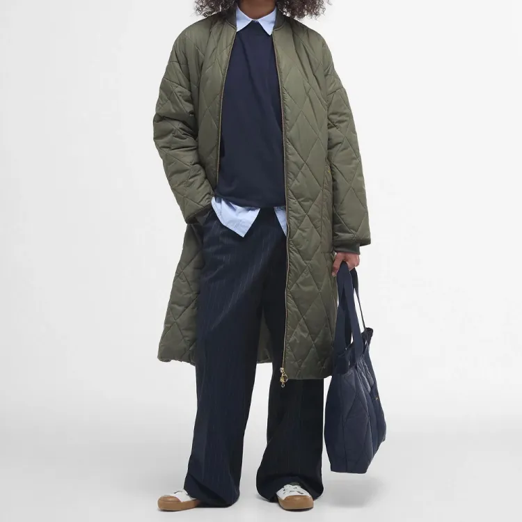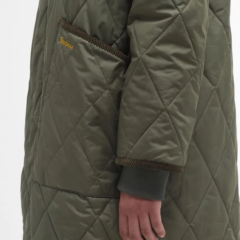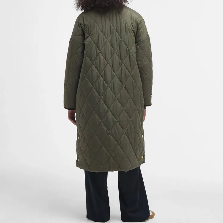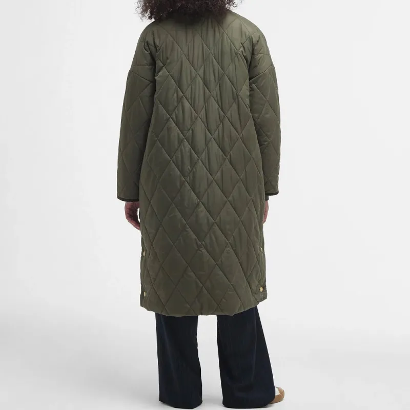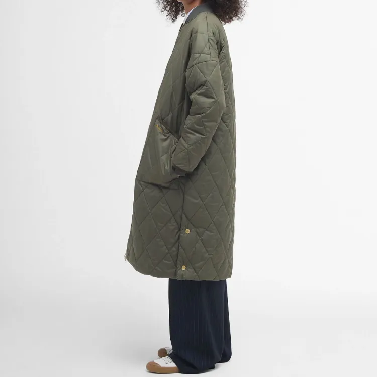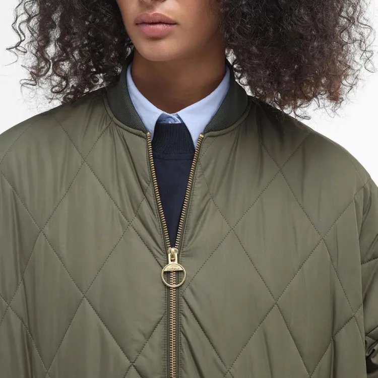 BARBOUR Хлопковый пуховик женский темно-оливковый