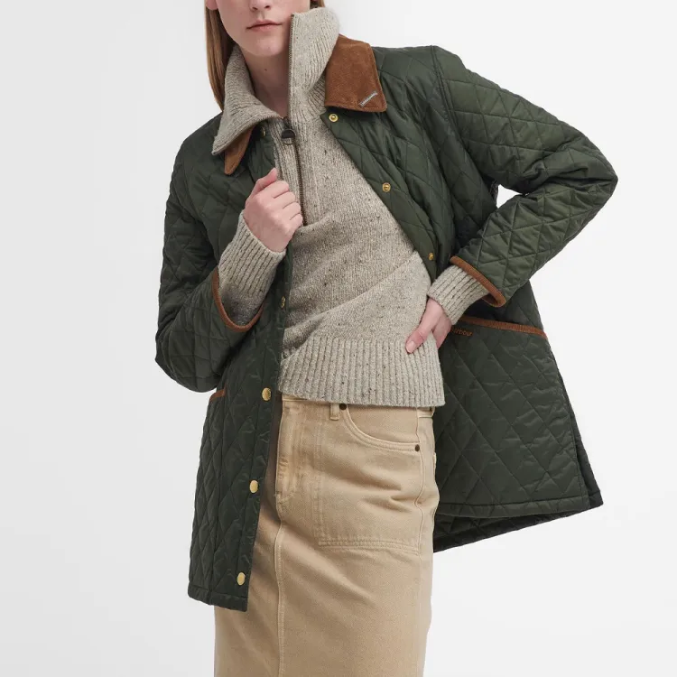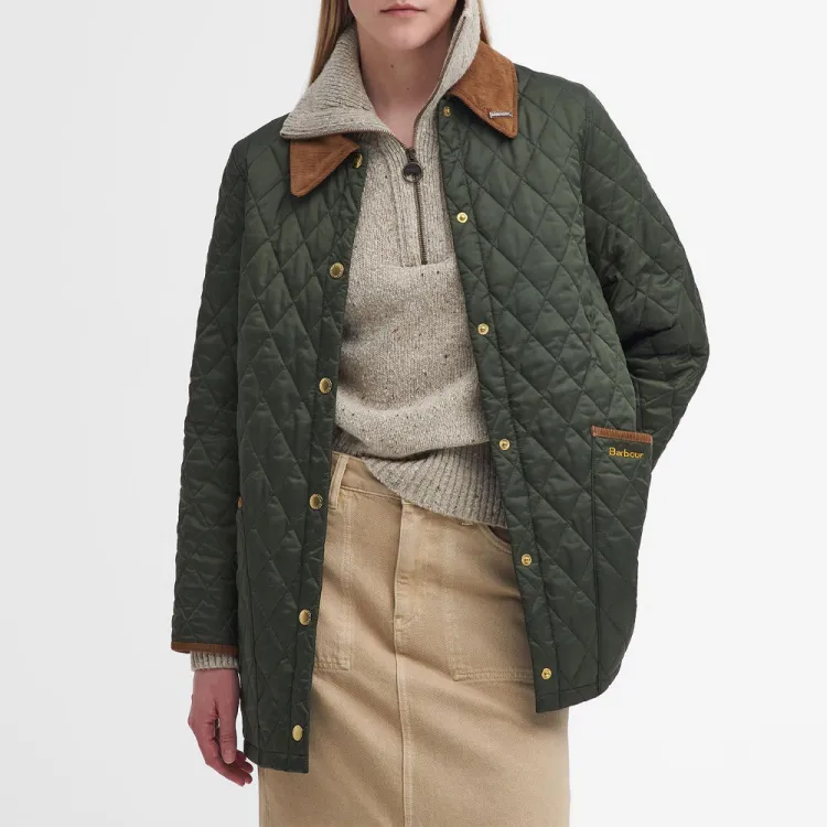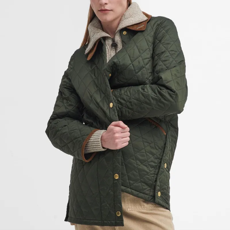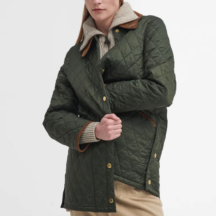 BARBOUR Хлопковый пуховик женский оливковый