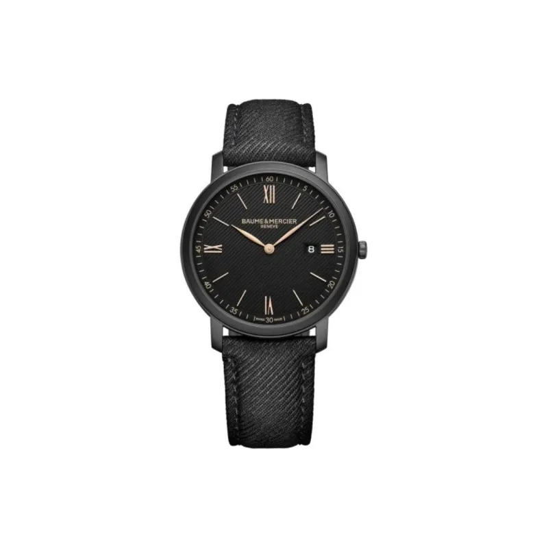 Baume Mercier Кварцевый механизм Мужские часы Часы 39 мм Черный циферблат Стальной корпус Часы Сатиновый ремешок