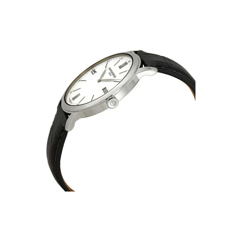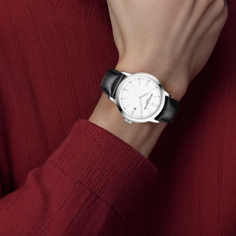 Baume Mercier Кварцевый механизм Мужские часы Часы 42 мм Белый циферблат Корпус из нержавеющей стали Ремешок из коровьей кожи
