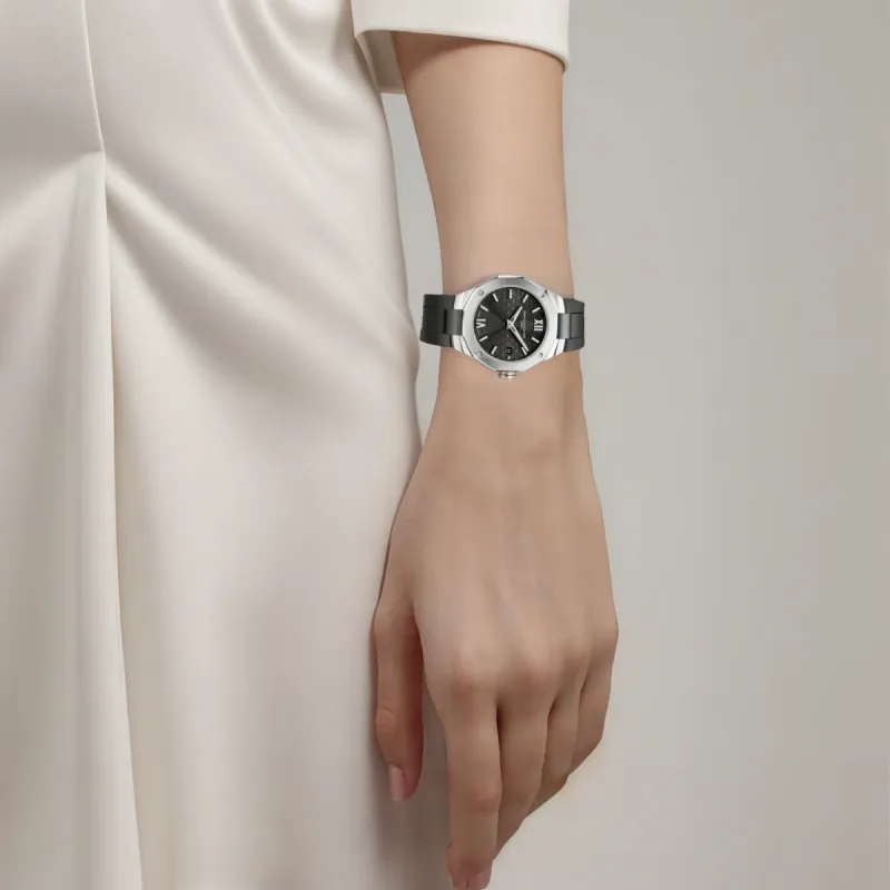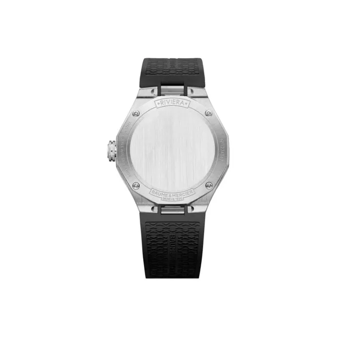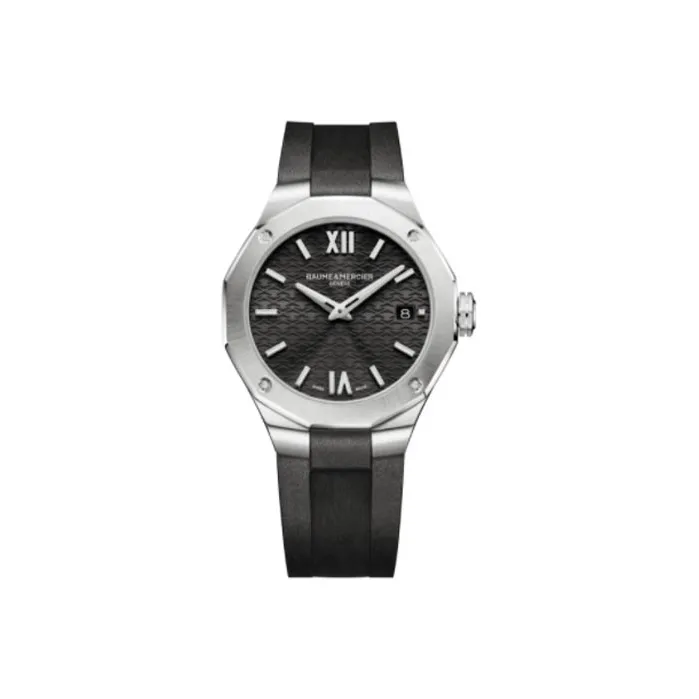 Baume Mercier Rivera Series Кварцевый механизм Женские часы 36 мм Черный циферблат Корпус из нержавеющей стали Резиновый ремешок