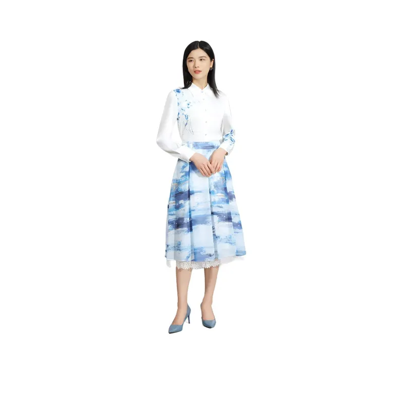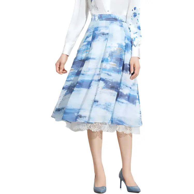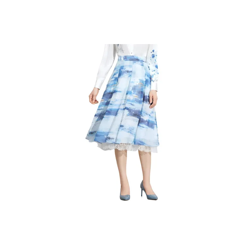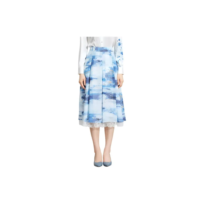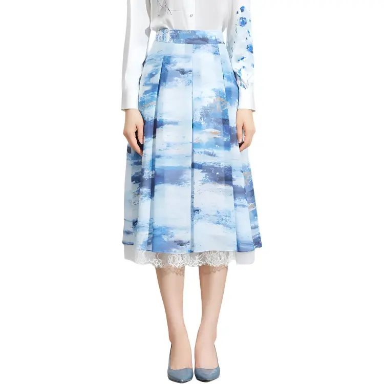 BBLLUUEE Повседневный Длинный Юбка Женские Отражающий Морской синий