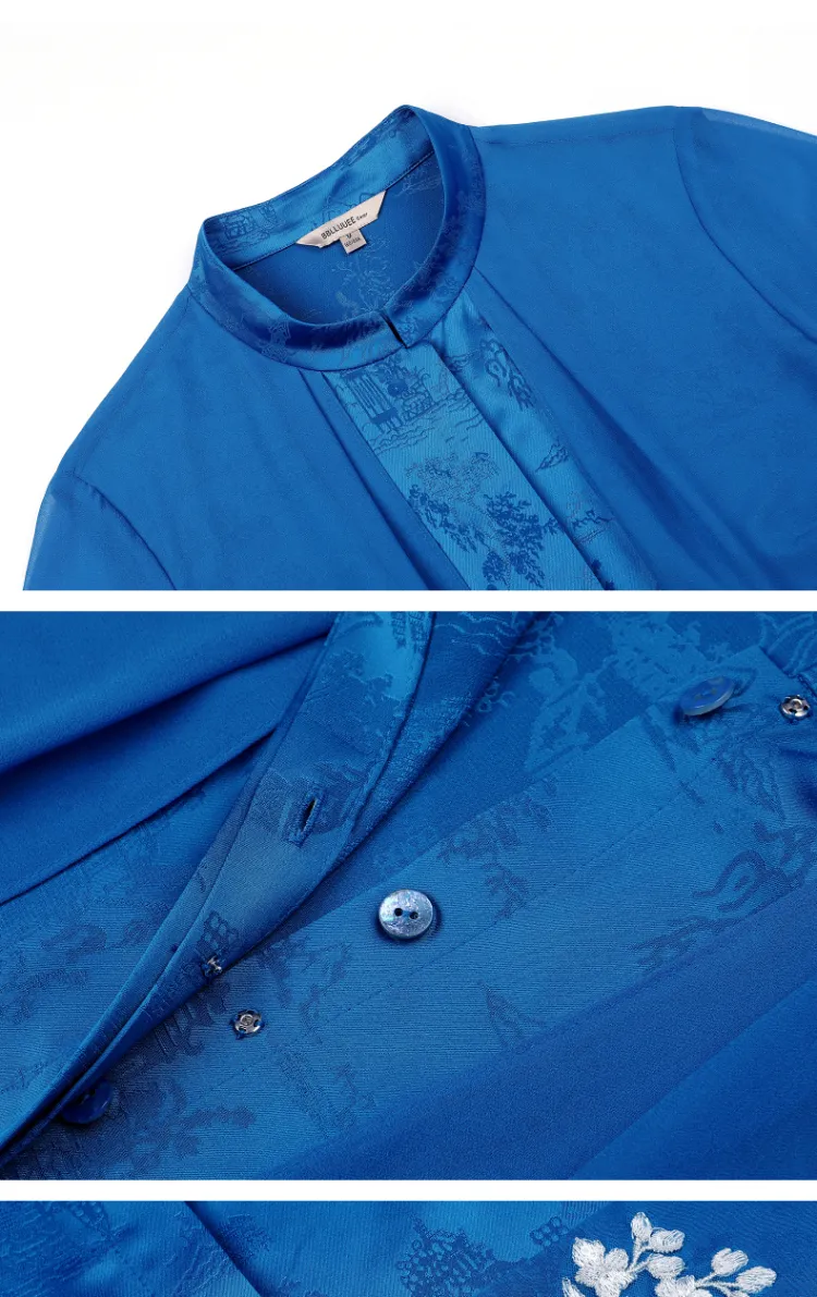 BBLLUUEE Длинный рукав Платье Женское Отражающий Морской синий