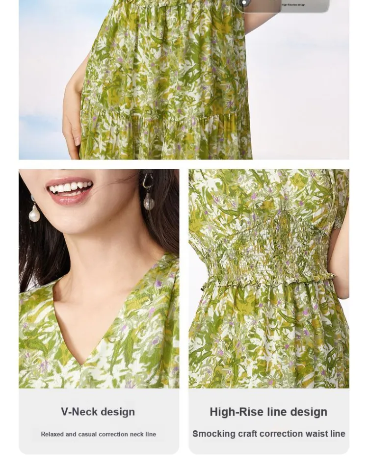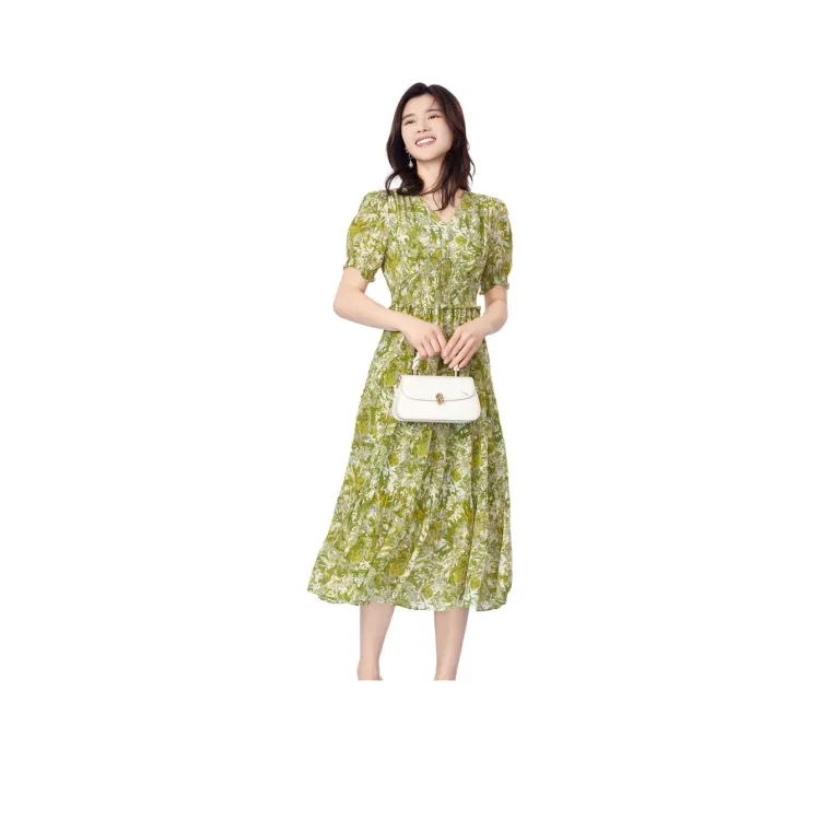 BBLLUUEE Короткий рукав Платье Женское Облако Ивовый зеленый