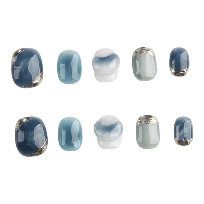 BDQC Синий Ручной Рисунок Смешанный Осветляющий Элегантность Укороченный False Nail 15 мм False Nail Короткий Лестница Синий Размытый
