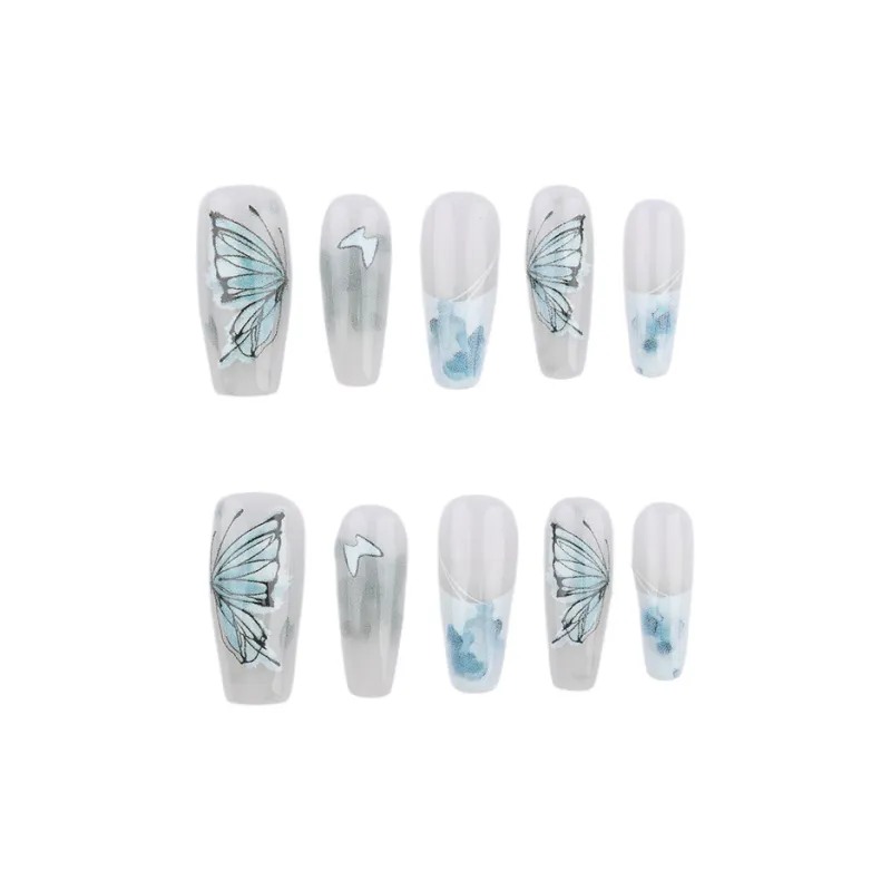 BDQC Китайский стиль Осветляющий Бабочка Элегантность False Nail 25 мм False Nail Средний LADDER Синий Однотонный Милый