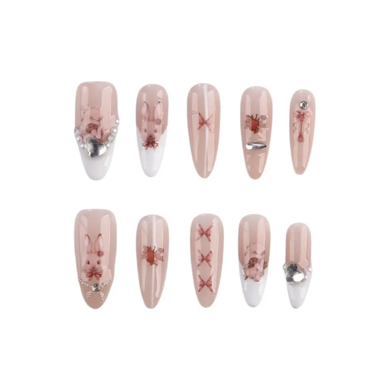 BDQC HAND DRAWN Кошачий глаз Elegance Brightening False Nail 25mm False Nail Овал Нежно-розовый Градиентный