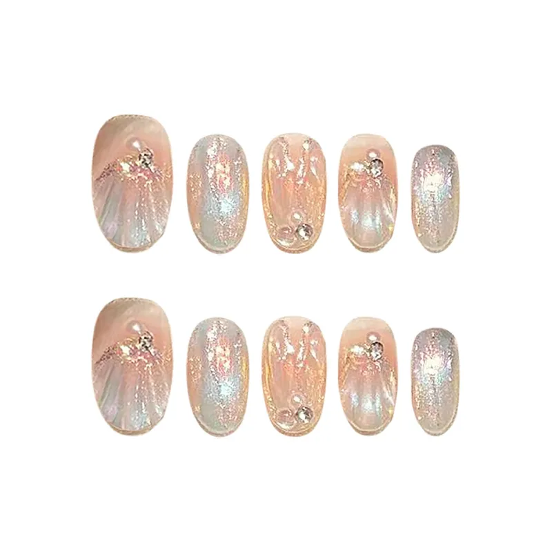BDQC Радуга Кошачий глаз Осветляющий Элегантность Премиум Мода 25 мм False Nail Миндаль Нежно-розовый Градиент