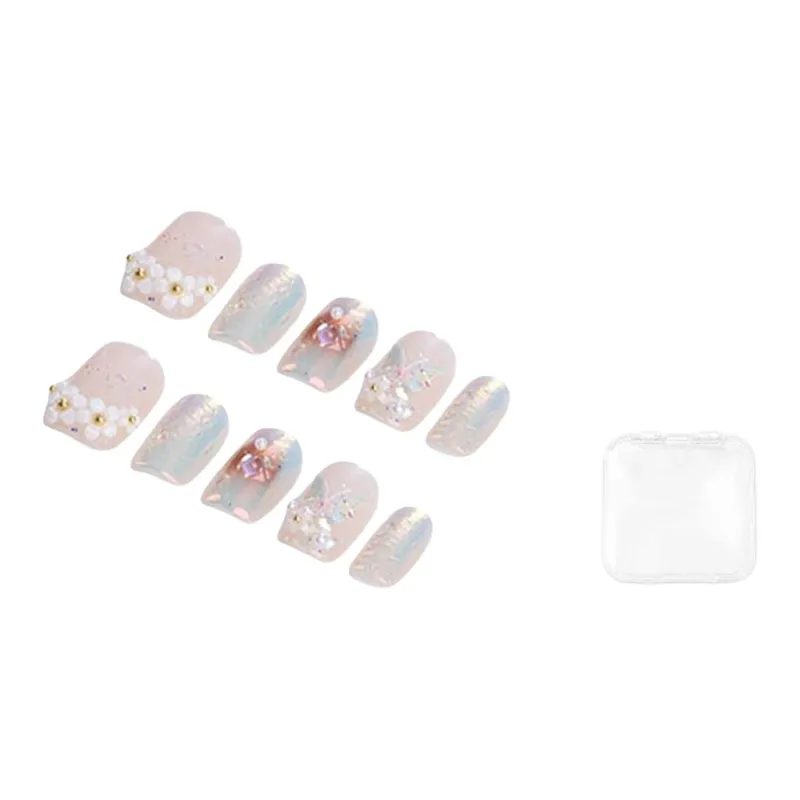 BDQC Spring Кожа Flattering Magic Mirror Pink 3D Flower Soft Style False Nail Short LADDER Pink Solid Color