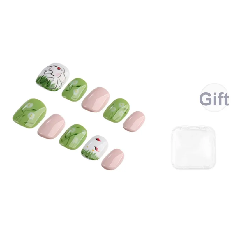 BDQC Весенне-летний Осветляющий HAND DRAWN Световая терапия False Nail Короткий ЛАДЬЕР Зеленый Jump Цвет Милый 15 мм