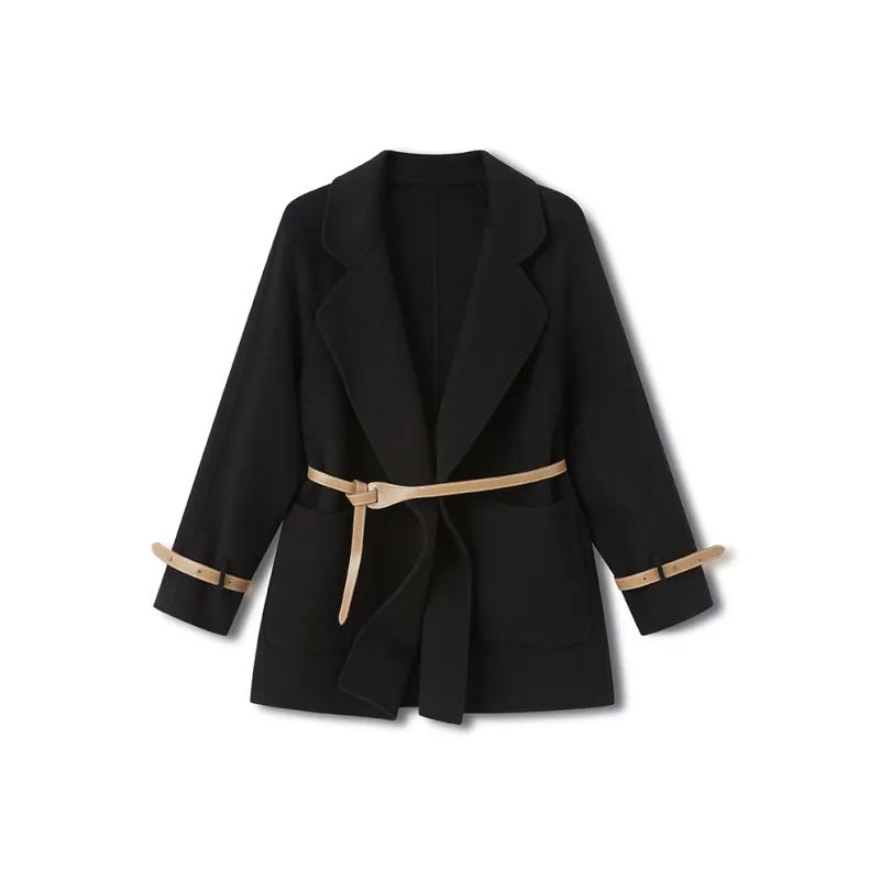 Beast King Кружево Up Утяжеленный Шерстяной Куртка Высокий Графский Двойной Слой Шерсть Женские