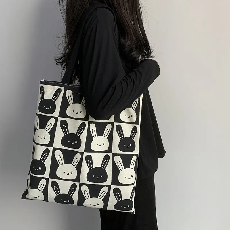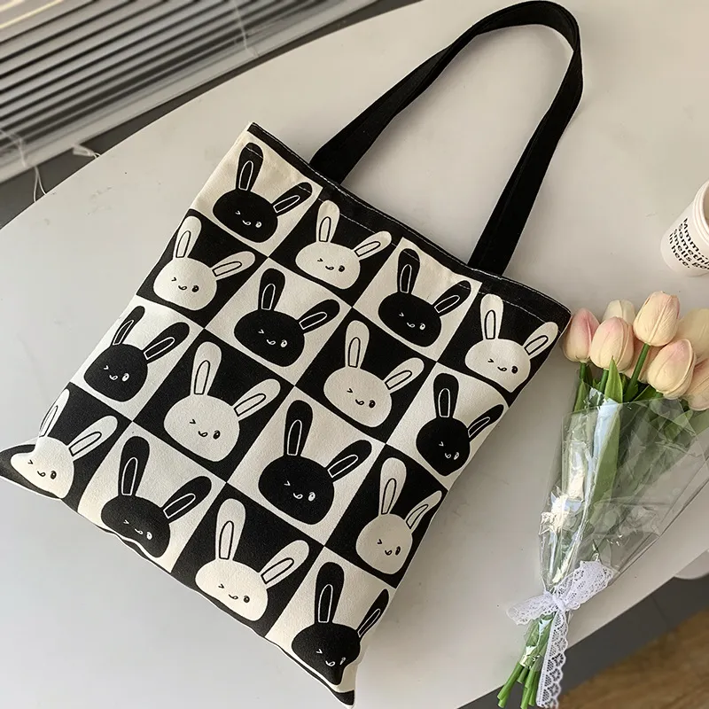 BEAUTIFUL AND CHARMING Черный Белый Кролик Холщовая Сумка Повседневная Сумка Переносная Сумка для Хранения