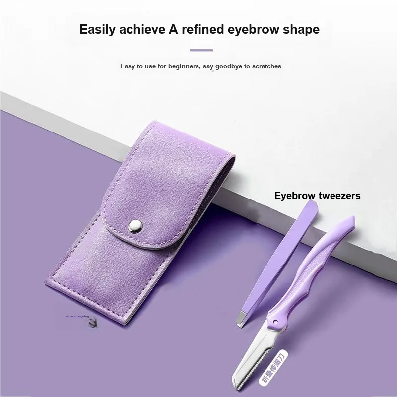 Тип:Кисть для бровей + Пинцет + Бритва для бровей + Кожа Чехол, Фиолетовый