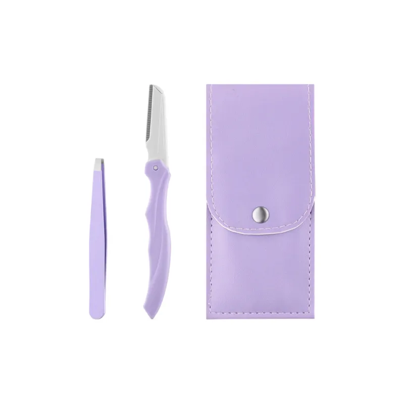 Кисть для бровей + Пинцет + Бритва для бровей + Кожа Чехол, Фиолетовый