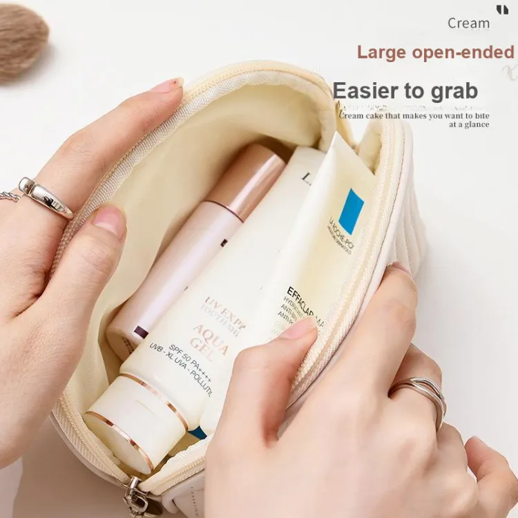 Полукруглая сумка для макияжа, кремово-белого цвета, 1 штука