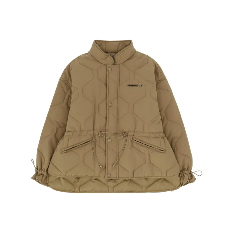 BEENTRILL Однотонный Воротник-стойка Свободный крой Хлопковый пуховик Женский Хаки