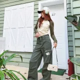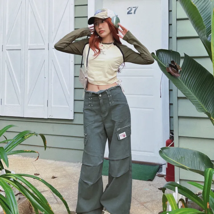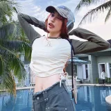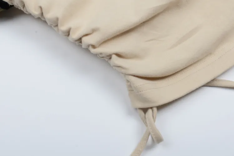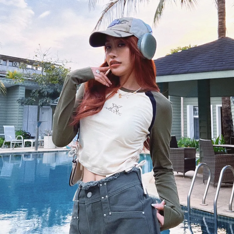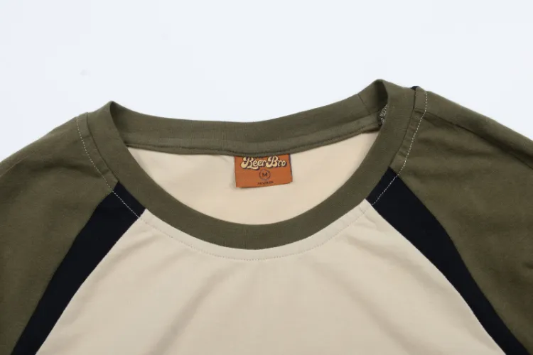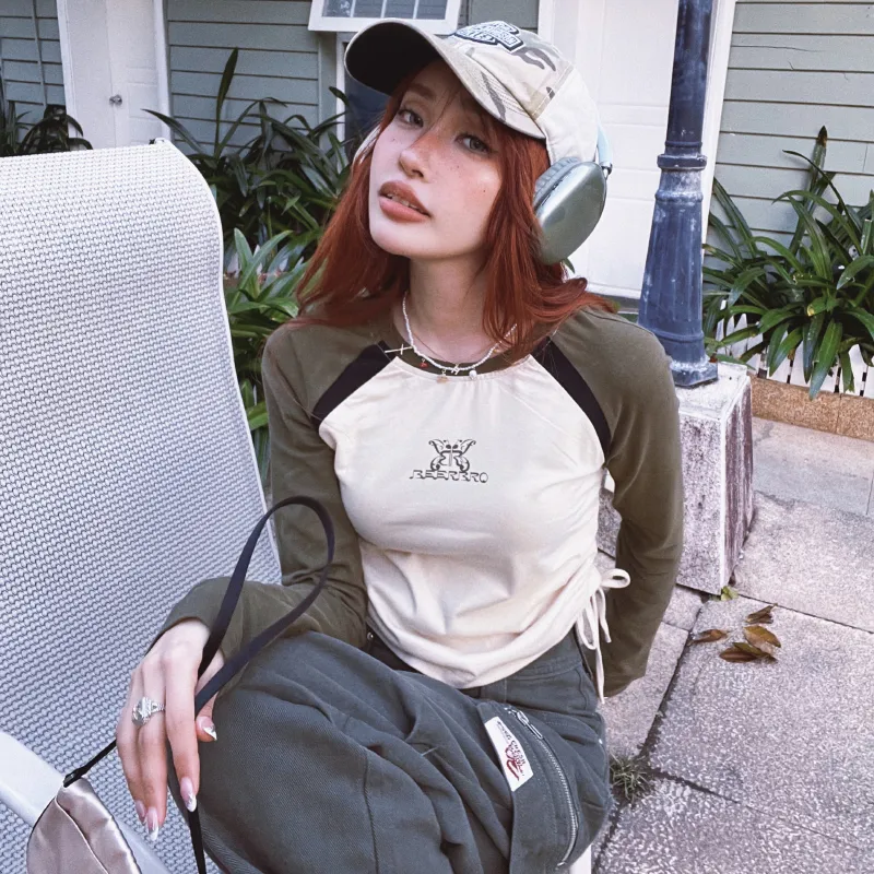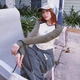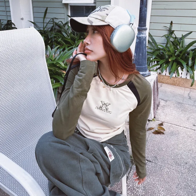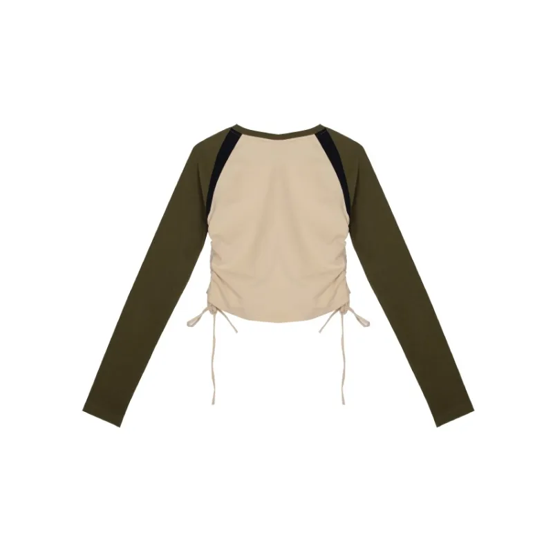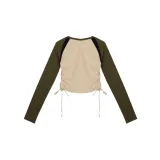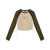 BEERBRO Прямой крой Длинный рукав Т-рубашка Женская Абрикос и Армейский зеленый