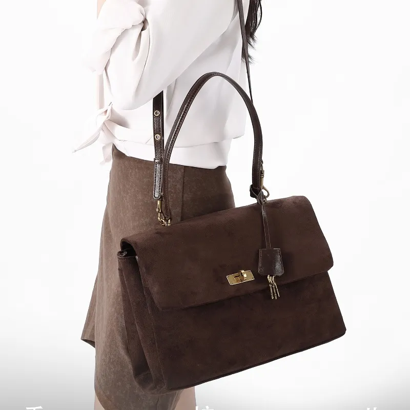 BEGOOER Кожа Бархат Сумка на плечо Стандартная Женская Кофейно-коричневая