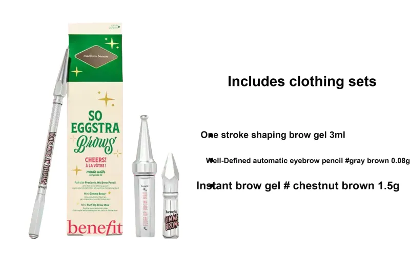 Вес нетто:Трехкомпонентный комплект: 3 мл гель для бровей с кистью + 0,08 г карандаш для бровей # Серо-коричневый + 1,5 г тушь для бровей # Каштаново-коричневый