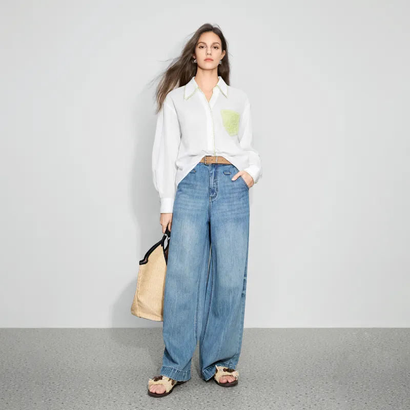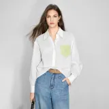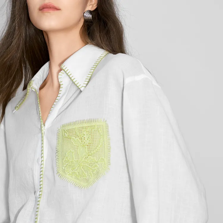 BEIQIANNI Экрю Женские Рубашки
