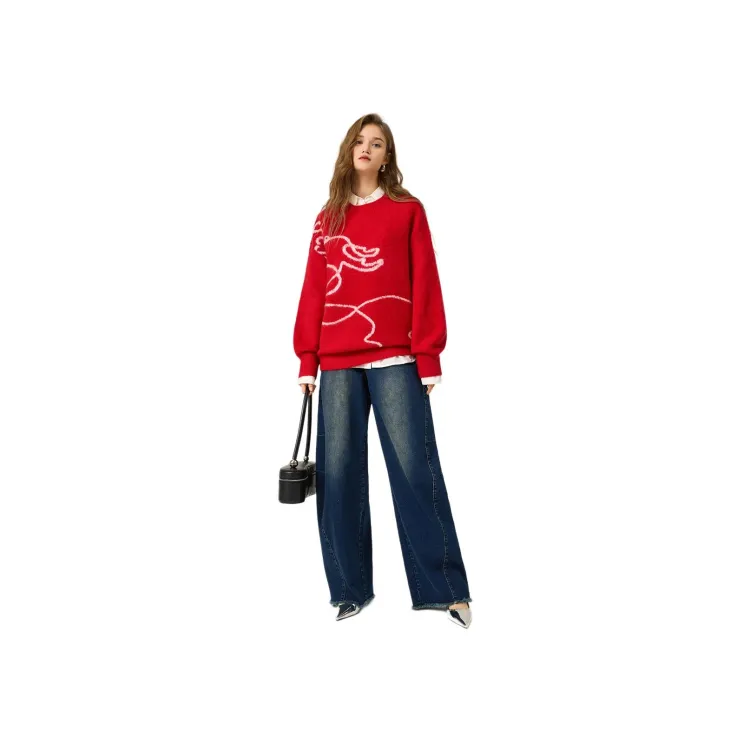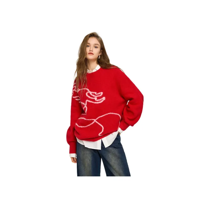 BEIQIANNI Красный Женский Свитер