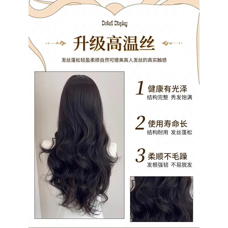 BEIQING Атмосфера Чёлка "восьмёрка" Большая волна Длинные волнистые Женская Перука Высокотемпературная Пряжа