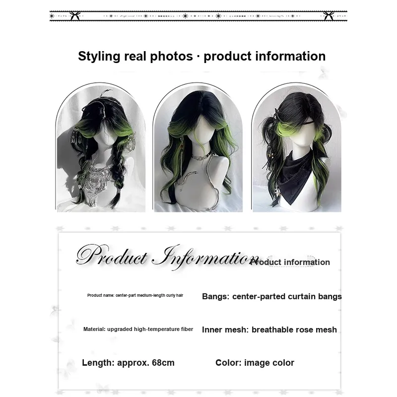 BEIQING Градиентный CENTER Разделённая Чёлка "восьмёрка" Балаяж Длинные волнистые Большая волна Женский Шапка