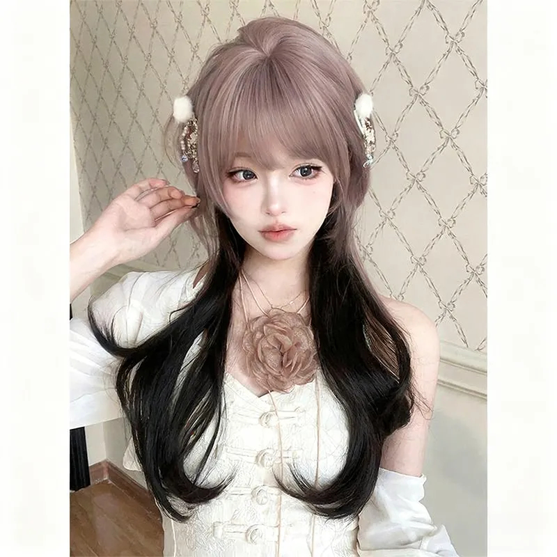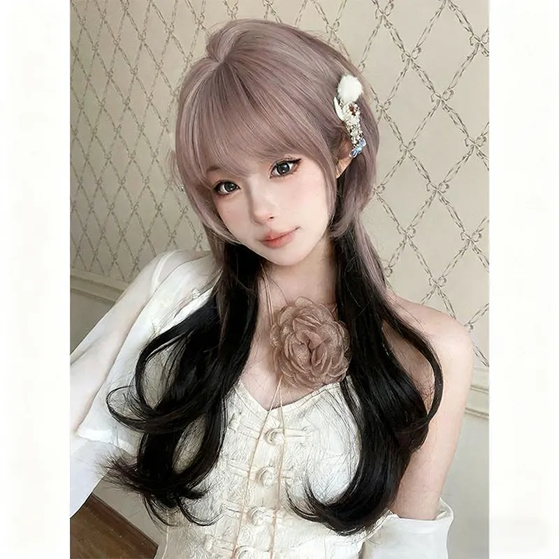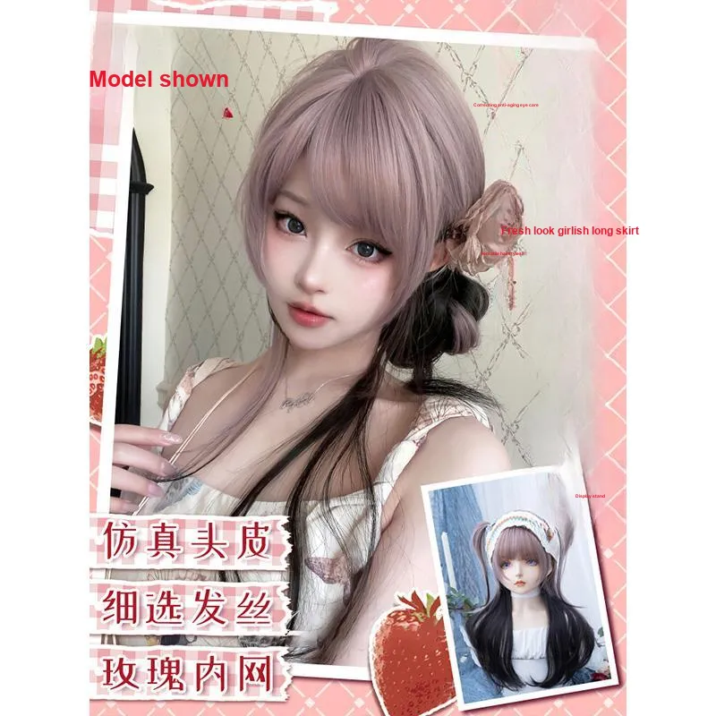 BEIQING 『Ночной эльф』 Ровная чёлка Медуза Голова Розовый черный Женский парик Высокотемпературная пряжа