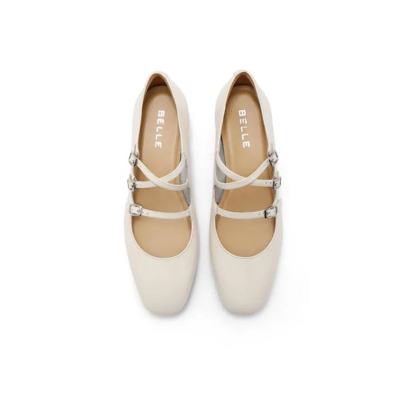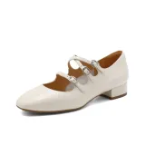 Белль Грубый каблук Туфли Мэри Джейн 2 см Женские Бежево-черные