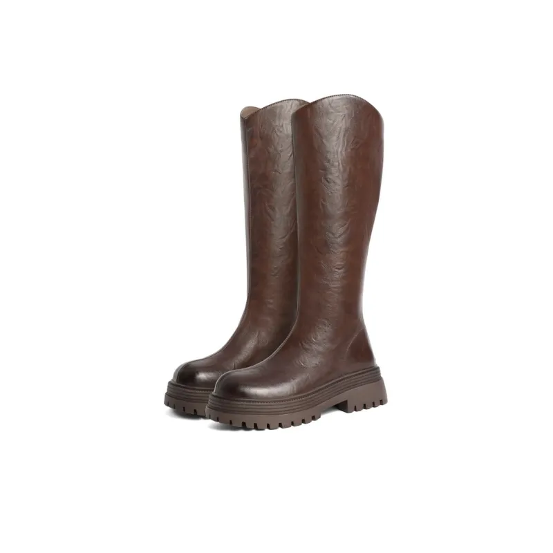 Белль Колено Высокие сапоги 5,5CM Женские Черный Экрю Коричневый Зеленый