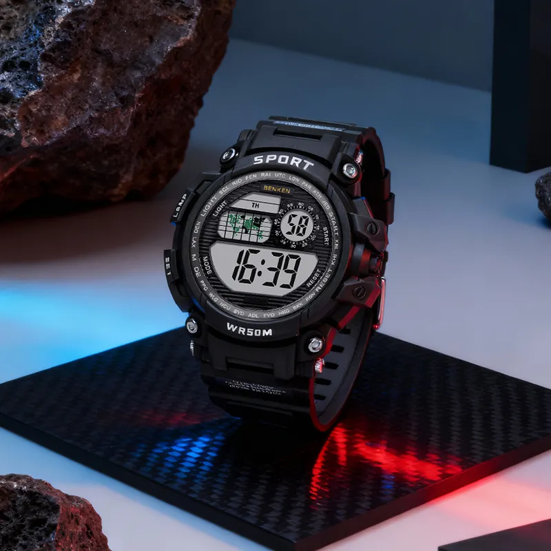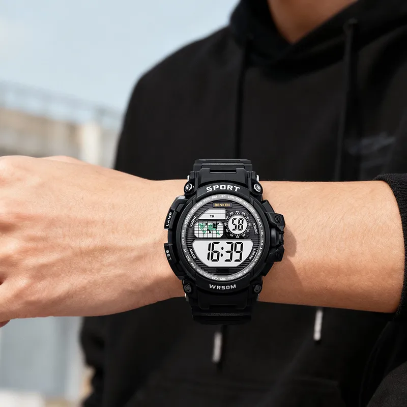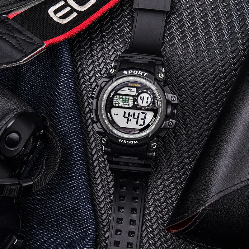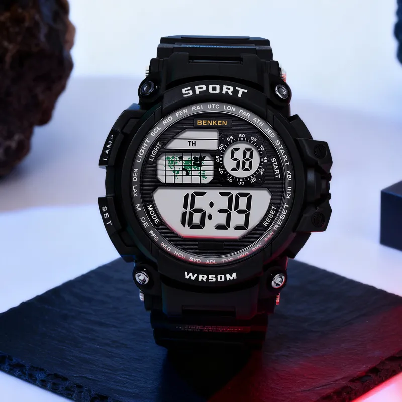 BENKEN Электронный механизм ремешок из TPU часы для мужчин черный циферблат